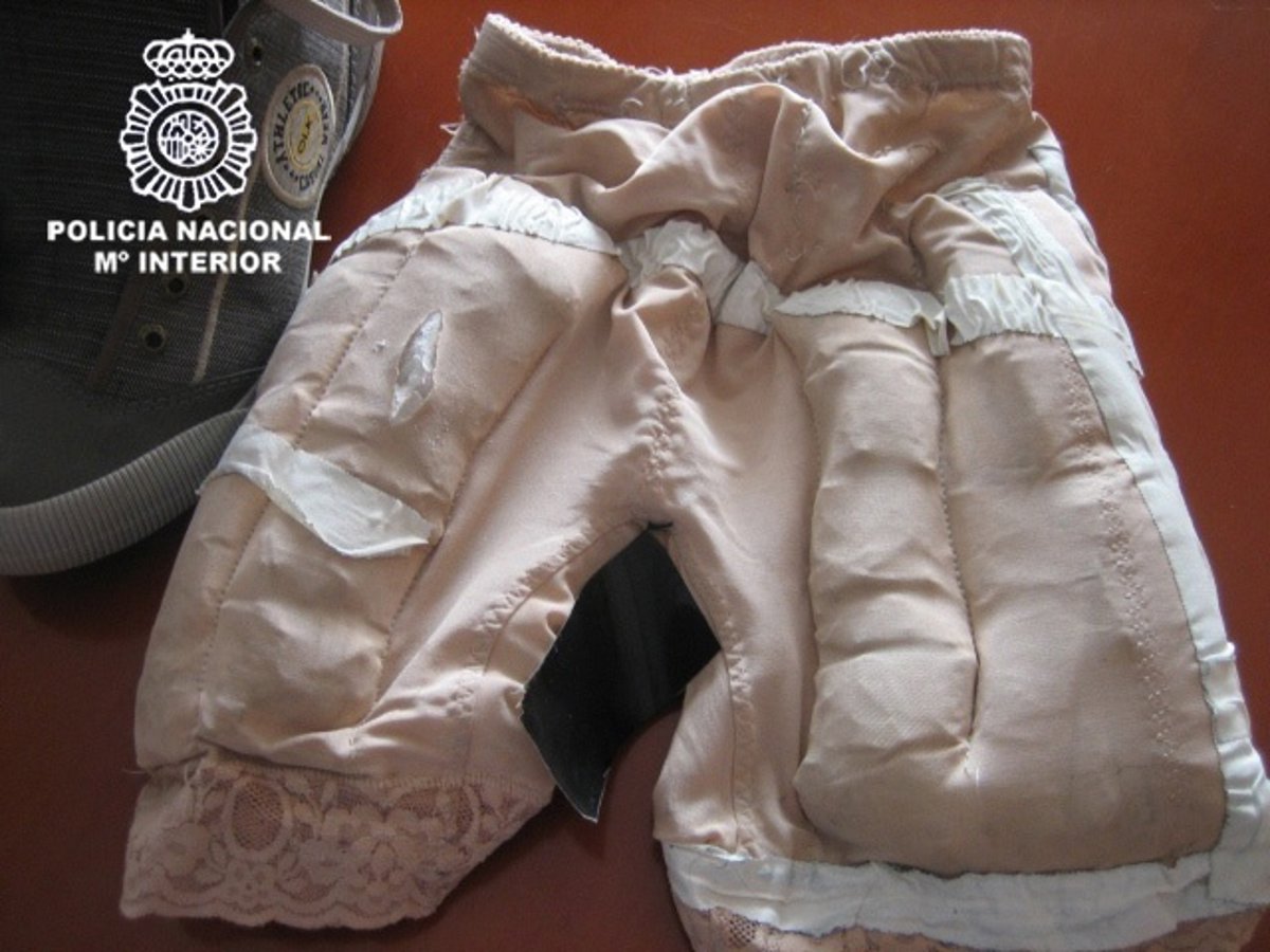 Le localizaron dos paquetes adosados a su cuerpo, en una faja-braga de mujer, y en las suelas de las zapatillas otras dos bolsas, en cuyo interior contenía cocaína, con un peso total de dos kilogramos, por lo que fue detenido por un presunto delito de tráfico de drogas.