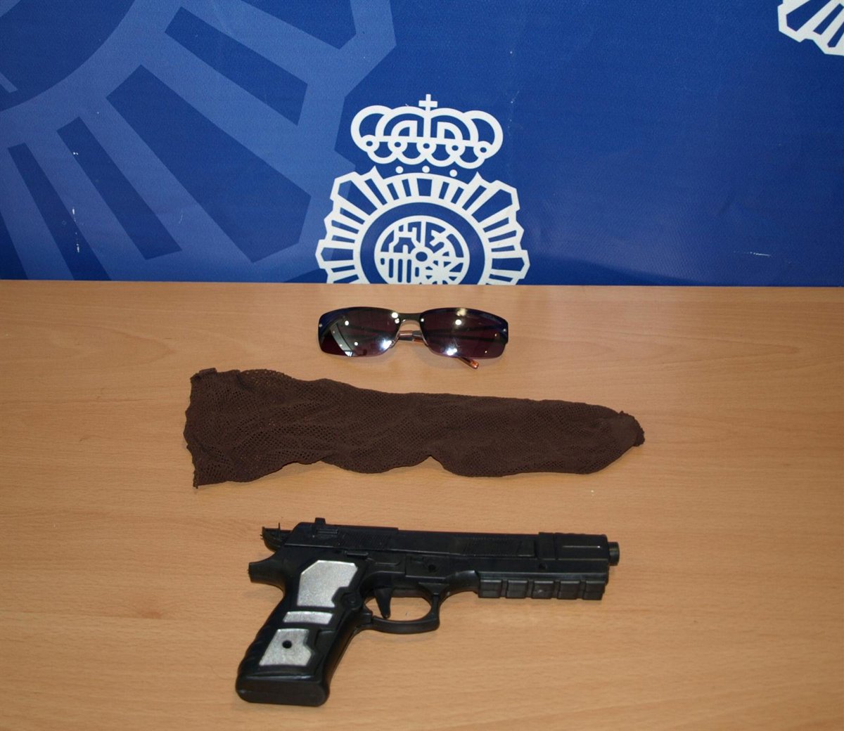 Igualmente, durante un cacheo superficial, los agentes le han intervenido una pistola simulada con la que, presuntamente, a intimidado al director y a los trabajadores de la entidad, así como una media de red de color marrón y unas gafas de sol.