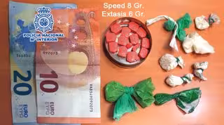 Una patrulla de seguridad ciudadana le identificó, y encontró entre sus pertenencias y "en lugares poco visibles" varios envoltorios de plástico con ocho gramos de speed y seis gramos de éxtasis fraccionado en 13 pastillas.
