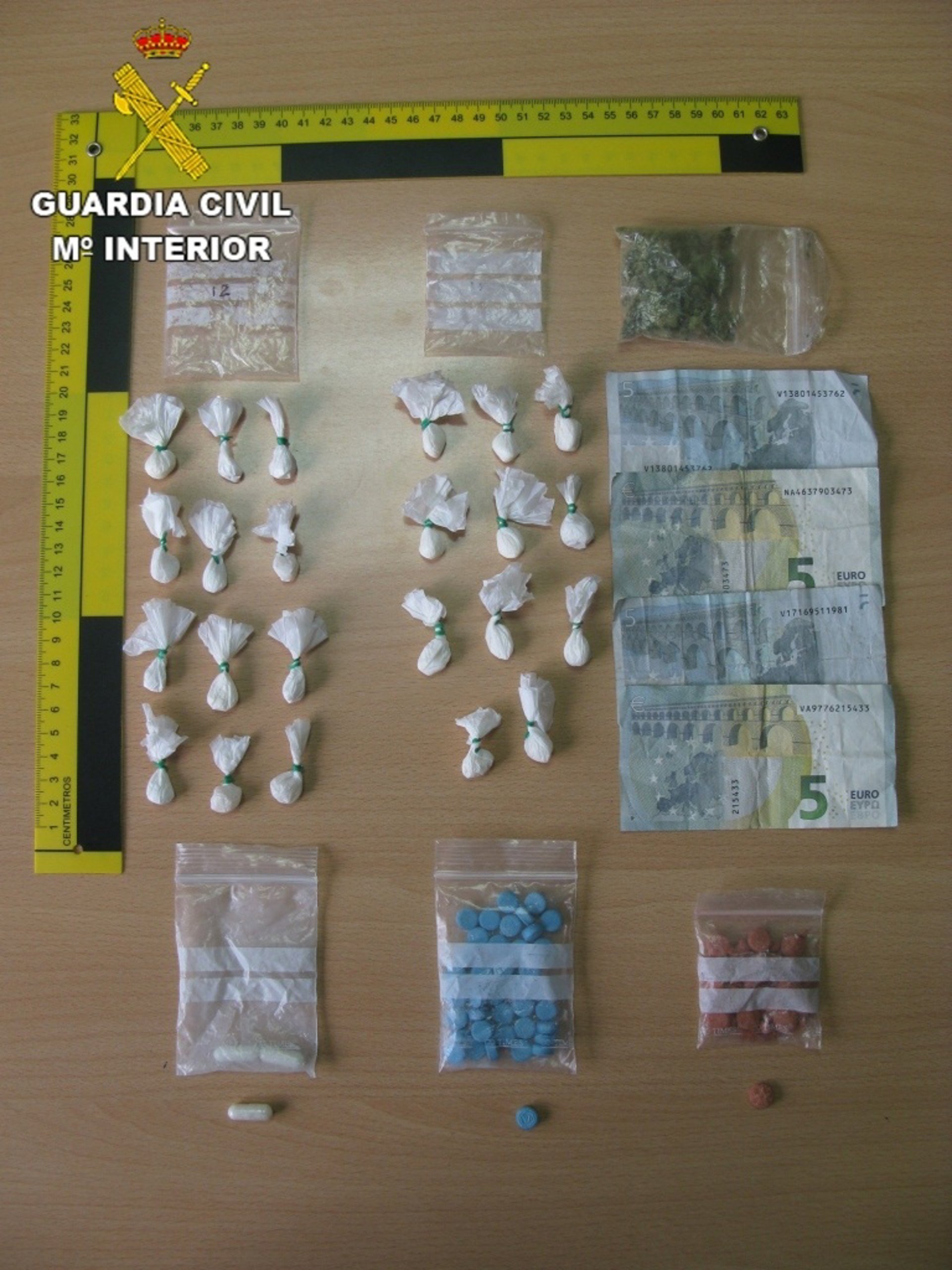 Agentes de la Guardia Civil han detenido en el barrio de La Torre de Valencia a un hombre de 36 años, de nacionalidad española, por llevar presuntamente 40 dosis de cocaína y 18 pastillas de éxtasis ocultas en su ropa.