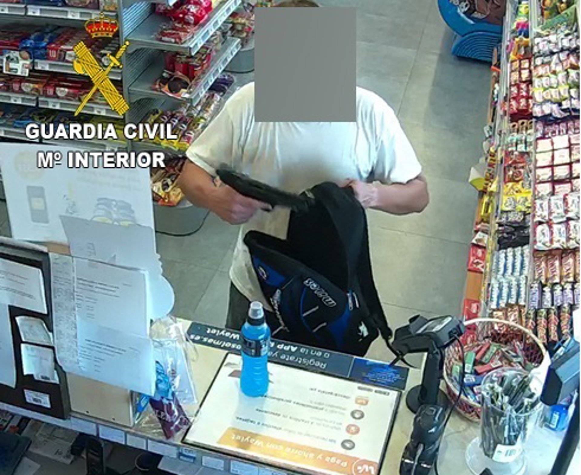 Tras varios meses de investigación, los guardias civiles lograron identificar, localizar y detener en la localidad de Burriana a un varón de 39 años, como supuesto autor de un delito de robo con violencia e intimidación, al cual se le intervino el arma utilizada y las prendas que portaba cuando cometió el robo.