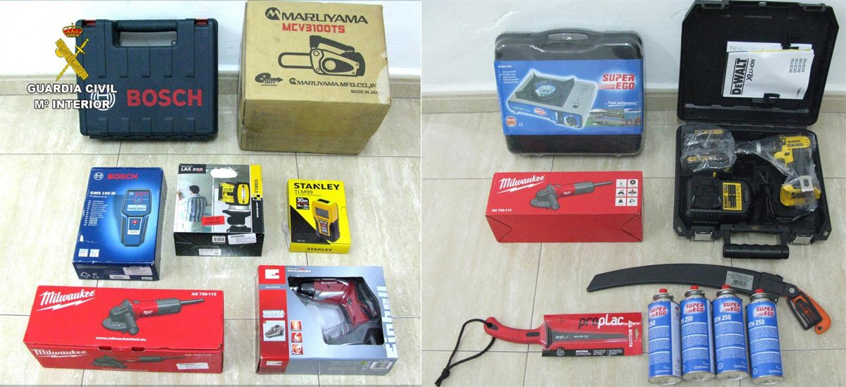 Por ello, se procedió a la detención de un hombre de 42 años como presunto autor de un delito de hurto. Los guardias civiles actuantes han podido recuperar todos los artículos