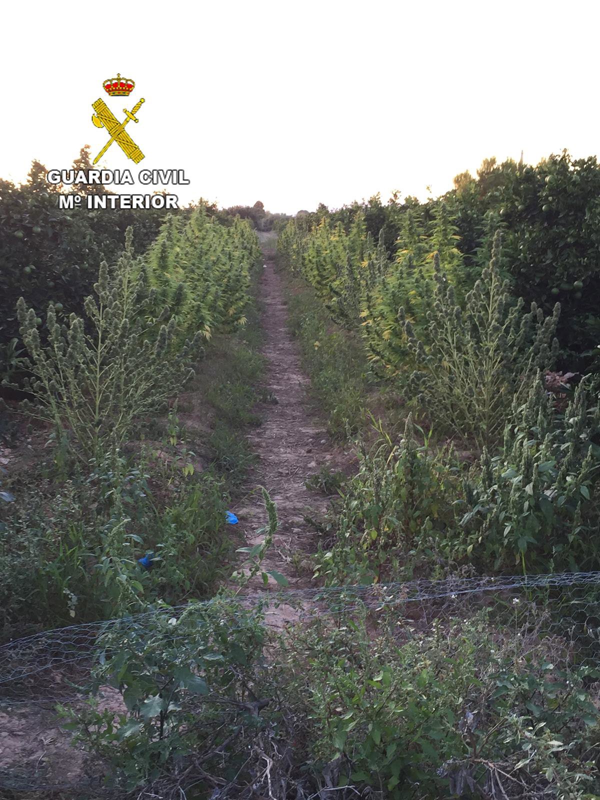 Los detenidos fueron sorprendidos en una finca agrícola del término municipal de Sant Jordi cuando efectuaban labores de custodia y podado de una plantación de marihuana, que se encontraba oculta en una plantación de naranjos.