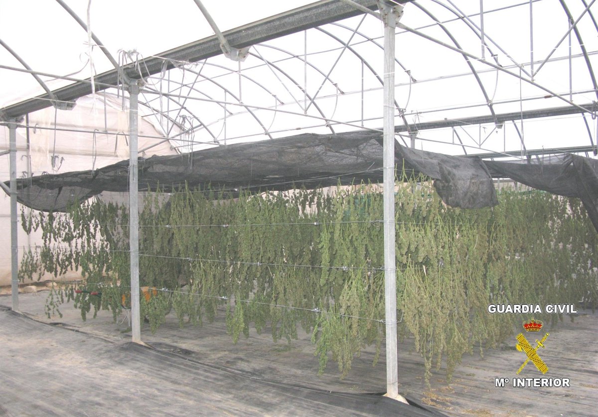 La Guardia Civil del puesto de Dolores (Alicante) hace tres meses inició una investigación, que ha permitido detener a seis personas y localizar la semana pasada "una importante plantación de marihuana" que se hallaba oculta en un invernadero en una finca de Almoradí.