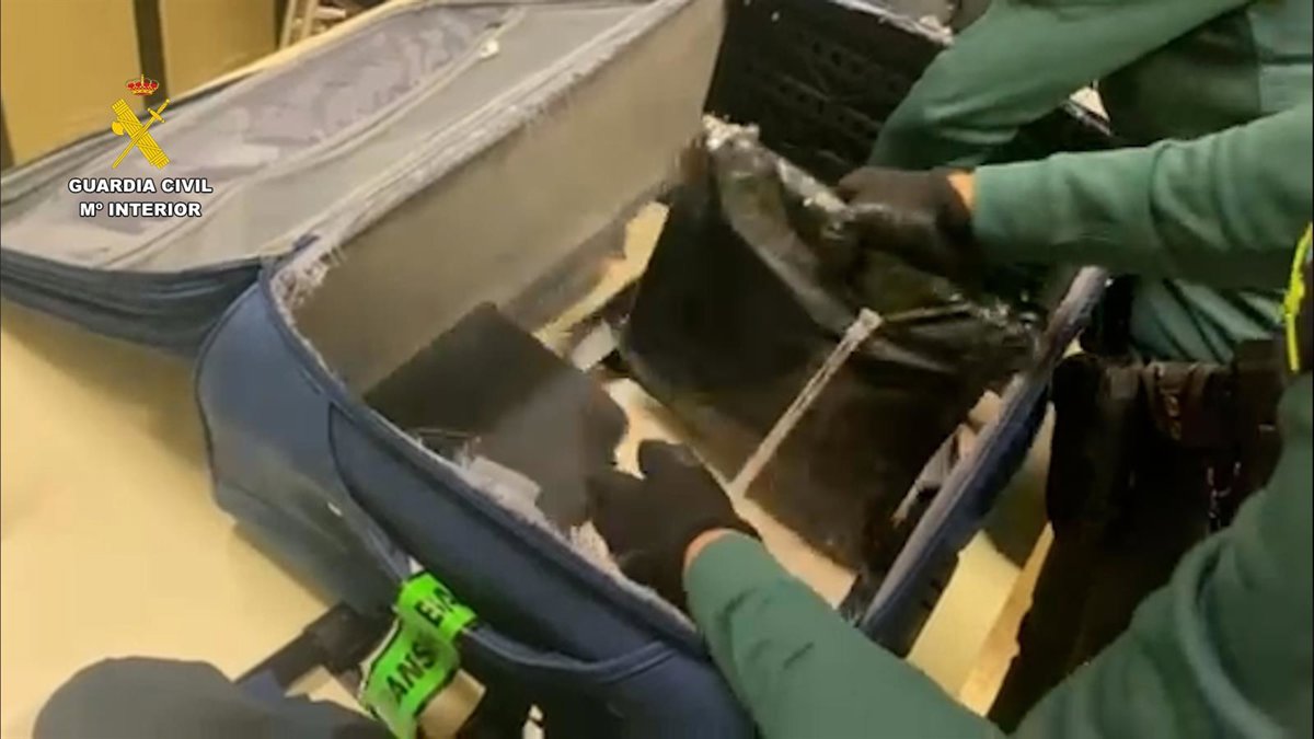 Tras recoger sus maletas, las personas fueron preguntadas por los agentes, antes de la inspección, si tenían algo que declarar, a lo que contestaron negativamente. Sin embargo, en la máquina de Rayos X se observó que el contenido presentaba una densidad "superior" a la normal.