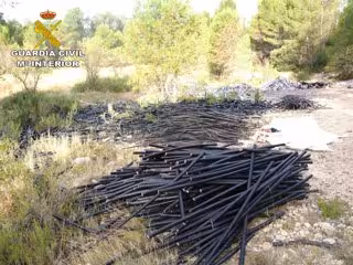 Por este motivo se inició la operación 'El Pelao', al objeto de identificar, localizar y detener a los supuestos autores de esta actividad ilícita. Fruto de las investigaciones realizadas, los agentes averiguaron que se trataba de un grupo organizado dedicado a cometer estos hechos, y una vez sustraído el cable se reunían en un paraje oculto entre la masa forestal perteneciente al Parque Natural de 'Las hoces del Cabriel', donde quemaban el cable sustraído para eliminar el recubrimiento de plástico y obtener el metal para su venta.