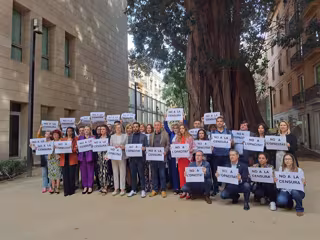 Los grupos de izquierda se han concentrado en el ficus de Les Corts con carteles de 'No a la censura' o 'No a la opacitat', antes del único pleno ordinario de mayo a dos semanas de la aprobación definitiva de los presupuestos de la Generalitat para 2025 acordados por PP y Vox.