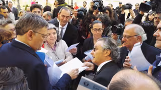 Los directores han aguardado la llegada del jefe del Consell en la calle Navellos, cerca del parlamento autonómico, para hacerle entrega de una carta. La presidenta de Escuelas Católicas de la Comunidad Valenciana, Vicenta Rodríguez, se ha dirigido al 'president' para exponerle la situación que viven y, a continuación, alrededor de 30 responsables de centros educativos concertados con aulas suprimidas o que no les han concedido el concierto, le han dado cada uno de ellos la carta, en algunos casos, con un adjunto sobre la situación de cada centro.