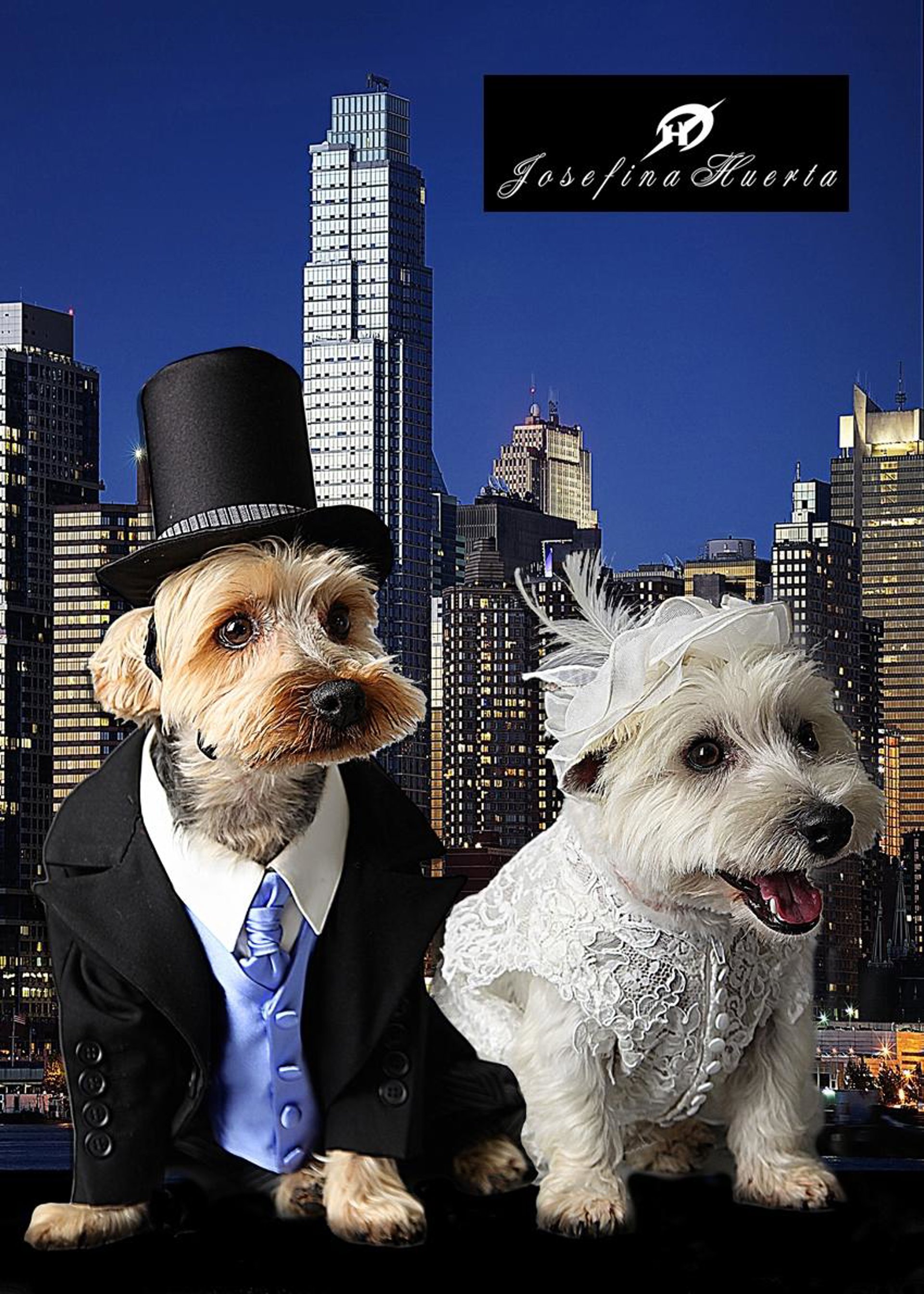 En concreto, se presenta una colección actual para perros, tanto en trajes de novio como de novia: chaqués, brillo y fracs para él, y los diseños más glamurosos para ella con bordados, volantes y tocados.