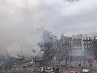 Desde el balcón del Ayuntamiento han presenciado la 'masclet' las Falleras Mayores, Consuelo Llobell y Carla García, sus Cortes de Honor; la vicealcaldesa, Sandra Gómez; el presidente de la Junta Central Fallera, Carlos Galiana, y otros ediles del consistorio.