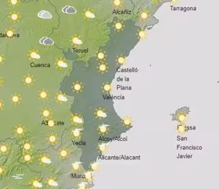 Además, soplará un viento del oeste y noroeste moderado, ocasionalmente fuerte y con rachas muy fuertes en la mitad norte de Castellón, según la predicción de la Agencia Estatal de Meteorología (Aemet).