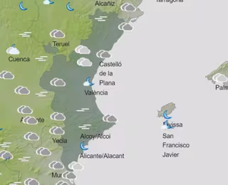 En concreto, las precipitaciones débiles y dispersas durante la primera mitad del día serán más probables en el sur de Valencia y en el nordeste y extremo sur de Alicante, según la predicción de la Agencia Estatal de Meteorología (Aemet).