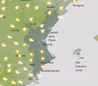 La Comunitat Valenciana vivirá un domingo marcado por cielos poco nubosos o despejados con intervalos de nubes altas y temperaturas en ascenso en el interior y en ligero ascenso o sin cambios en el resto, que alcanzarán los 21 en Ontinyent.