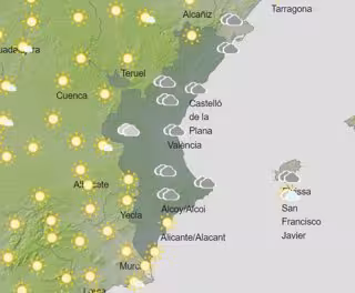 Finalmente, en Alicante, se esperan máximas de 32 en Orihuela, 30 en Elche, 29 en Alicante, 28 en Alcoi y 27 en Dénia. Las mínimas serán de 17 en Alcoi, 18 en Elche y Orihuela, 19 en Dénia y 20 en Alicante.