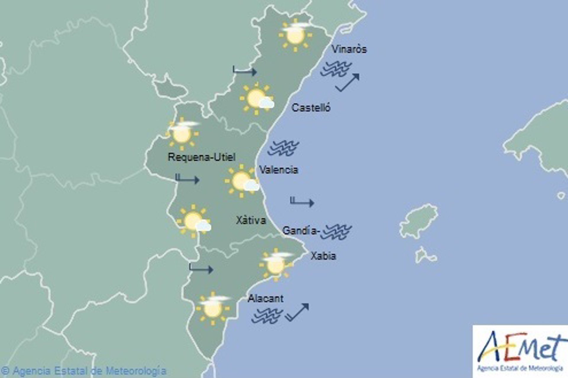 Según prevé la Agencia Estatal de Meteorología (Aemet), en el interior subirán las mínimas, al igual que las máximas en el litoral. No obstante, en el interior de la provincia de Valencia, las máximas irán en descenso.