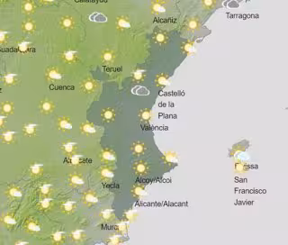 Finalmente, en Alicante, se esperan máximas de 31 en Orihuela, 30 en Alcoi, 29 en Elche y Dénia, y 28 en Alicante. Las mínimas serán de 17 en Alcoi, 20 en Elche y Orihuela, 21 en Dénia y 22 en Alicante.