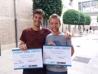 Aurelio Puerta Martín y Kiko Alfaro Moscardó, dos estudiantes de último curso del Grado en Diseño y Desarrollo de Videojuegos de la Universitat Jaume I de Castellón, han ganado el primer concurso de estudiantes de videojuegos de la Comunidad Valenciana (Student Game Contest), organizado por la Asociación de Estudiantes de Videojuegos (AEV), con su prototipo Towerglass.