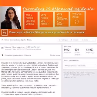 Una convocatoria a través de la plataforma Change.org y un evento a través de la red social Facebook, piden que la candidata de Compromís Mònica Oltra sea la próxima presidenta de la Generalitat Valenciana. Asimismo, la última de ellas ha convocado una concentración para este viernes a las 21.00 horas en la Plaza del Ayuntamiento de Valencia para reclamarlo.
