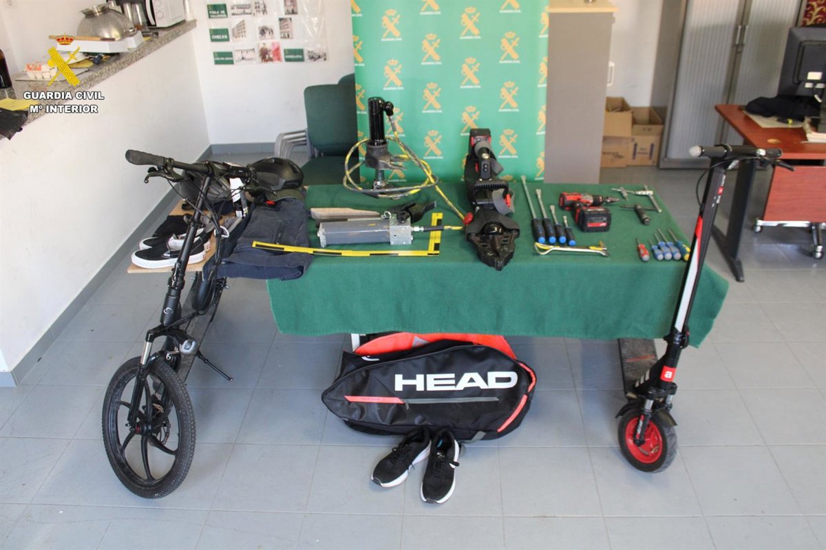 La patrulla sorprendió y detuvo a estos dos hombres, de 20 y 52 años y nacionalidad rusa. Se les imputan varios delitos de robo con fuerza y daños. Además, los efectivos intervinieron el coche que empleaban los arrestados para acudir a las poblaciones, las numerosas herramientas especializadas que usaban para forzar los cajeros y los patinetes que utilizaban para acudir desde las afueras de las poblaciones hasta el cajero automático.