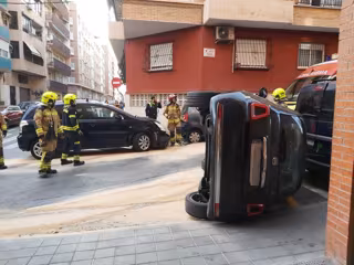 Dos personas han resultado heridos leves al volcar el coche en el que circulaban tras sufrir un accidente de tráfico con otro vehículo. El suceso se ha registrado sobre las 16.00 horas en la calle Cerd de Alicante.