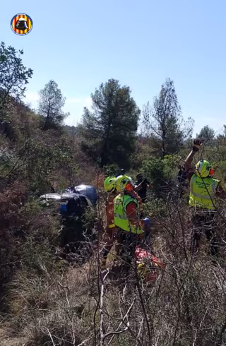 Dos heridos por politraumatismo al caer su coche 20 metros por un barranco en Tous (Valencia) - CONSORCIO BOMBEROS VALENCIA