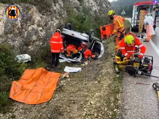 Bomberos de los parques de Xtiva y Alzira y un jefe de sector del Consorcio Provincial han acudido hasta el lugar, donde un vehículo ha sufrido una salida de vía y ha quedado volcado sobre el techo. Los efectivos han excarcelado a los dos ocupantes, que han recibido asistencia sanitaria.