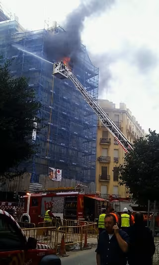 El fuego se ha originado sobre las 10 horas en un edificio que se ubica en el cruce de la calle Cádiz con Literato Azorín, y el origen podría ser unas obras de reforma en la fachada del edificio, en concreto, unas tareas de soldadura.