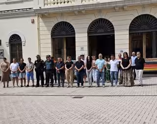 La alcaldesa, Lara Romero, y otros integrantes de la corporación municipal, además de los representantes de las fuerzas de seguridad se han concentrado a las 12.00 horas a las puertas del edificio consistorial.