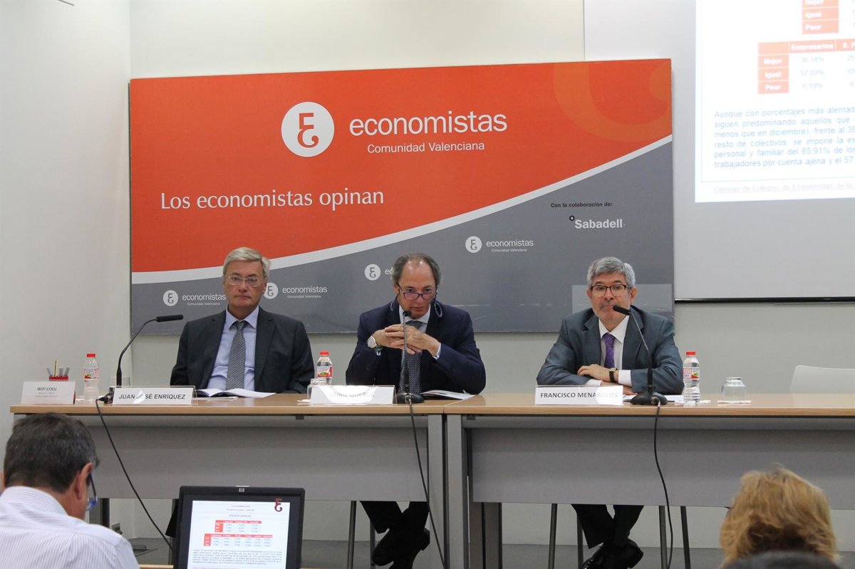 Así se desprende de la encuesta Los economistas opinan que se ha presentado este lunes en un acto que ha contado con la presencia del decano del Colegio de Economistas de Castellón y presidente del Consejo Valenciano de Economistas, Jaime Querol; el decano del Colegio de Economistas de Valencia, Juan José Enríquez; y el decano del Colegio de Economistas de Alicante, Francisco Menargues.