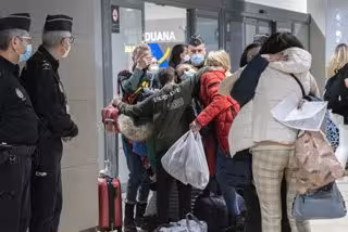 Refugiados ucranianos son recibidos por sus familias de acogida, a su llegada al aeropuerto de Manises el pasado sábado - Jorge Gil - Europa Press