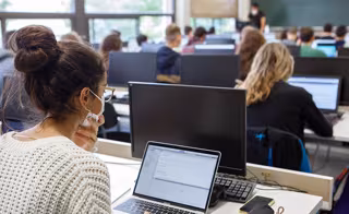 Archivo - Estudiantes, con ordenadores, en clase. - UPNA - Archivo
