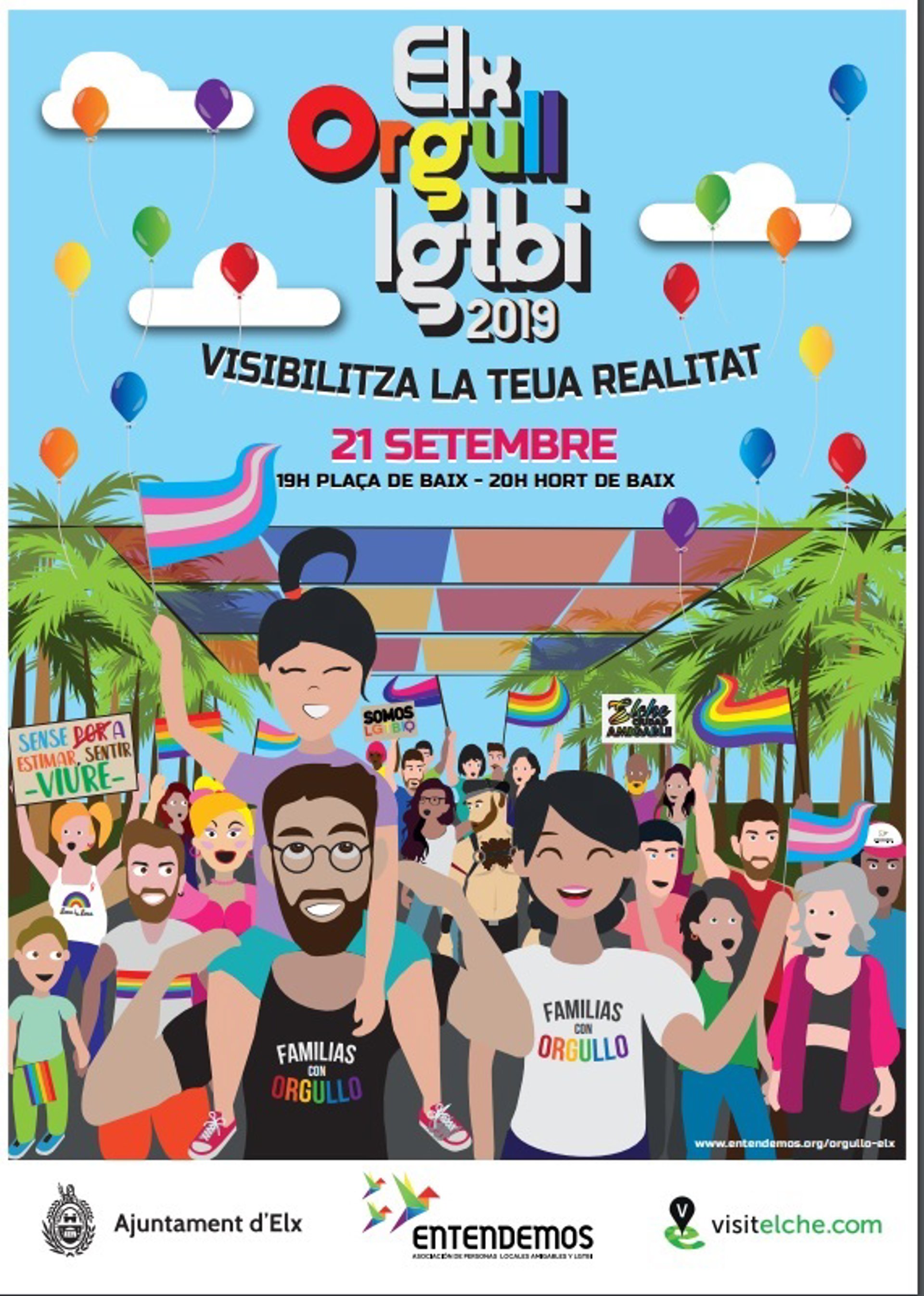 El Ayuntamiento de Elche (Alicante) y la entidad "Entendemos" han colaborado en la organización de la primera manifestación del Orgull LGTBI el próximo sábado 21 con el lema "Visibiliza tu realidad". La celebración también servirá para rendir homenaje a las personas mayores que "iniciaron la lucha por la igualdad real".