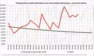 La Comunitat Valenciana está viviendo un diciembre particularmente cálido, con la temperatura media más alta desde que hay registros (en el período entre el 1 y el 26 de diciembre). A este ritmo, este diciembre será el primero de la serie histórica en que la temperatura media en la Comunitat supere los 11 grados. El de 2019 será el tercer mes de diciembre en casi 70 años que se considere "extremadamente cálido" (los otros dos fueron los de 2015 y 2018).