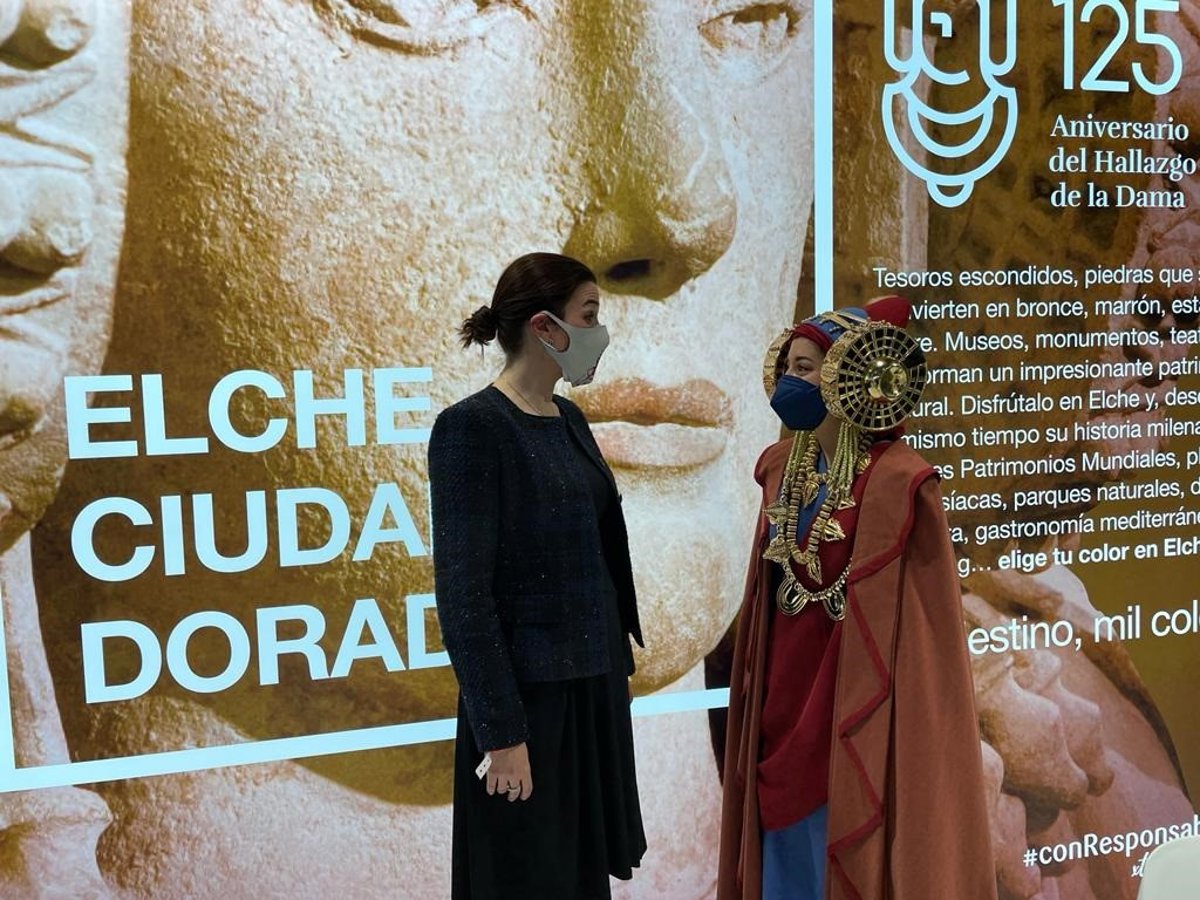 El Ayuntamiento de Elche ha enfocado su estancia en FITUR para que la Dama cobre este año protagonismo por coincidir con el 125 aniversario de su hallazgo, ya que la ciudad ha contado por primera vez con un expositor propio en la Feria Internacional de Turismo.