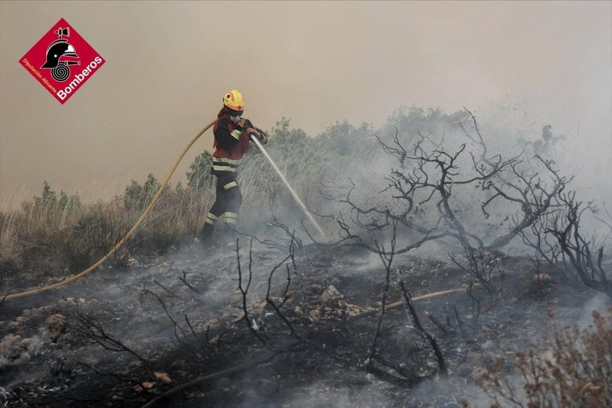 A raíz del incendio declarado y atendiendo a la evolución meteorológica prevista para las próximas horas y la madrugada de este sábado, Emergencias ha avisado que "es posible que se produzca acumulación de humo" en Ibi y Alcoi.