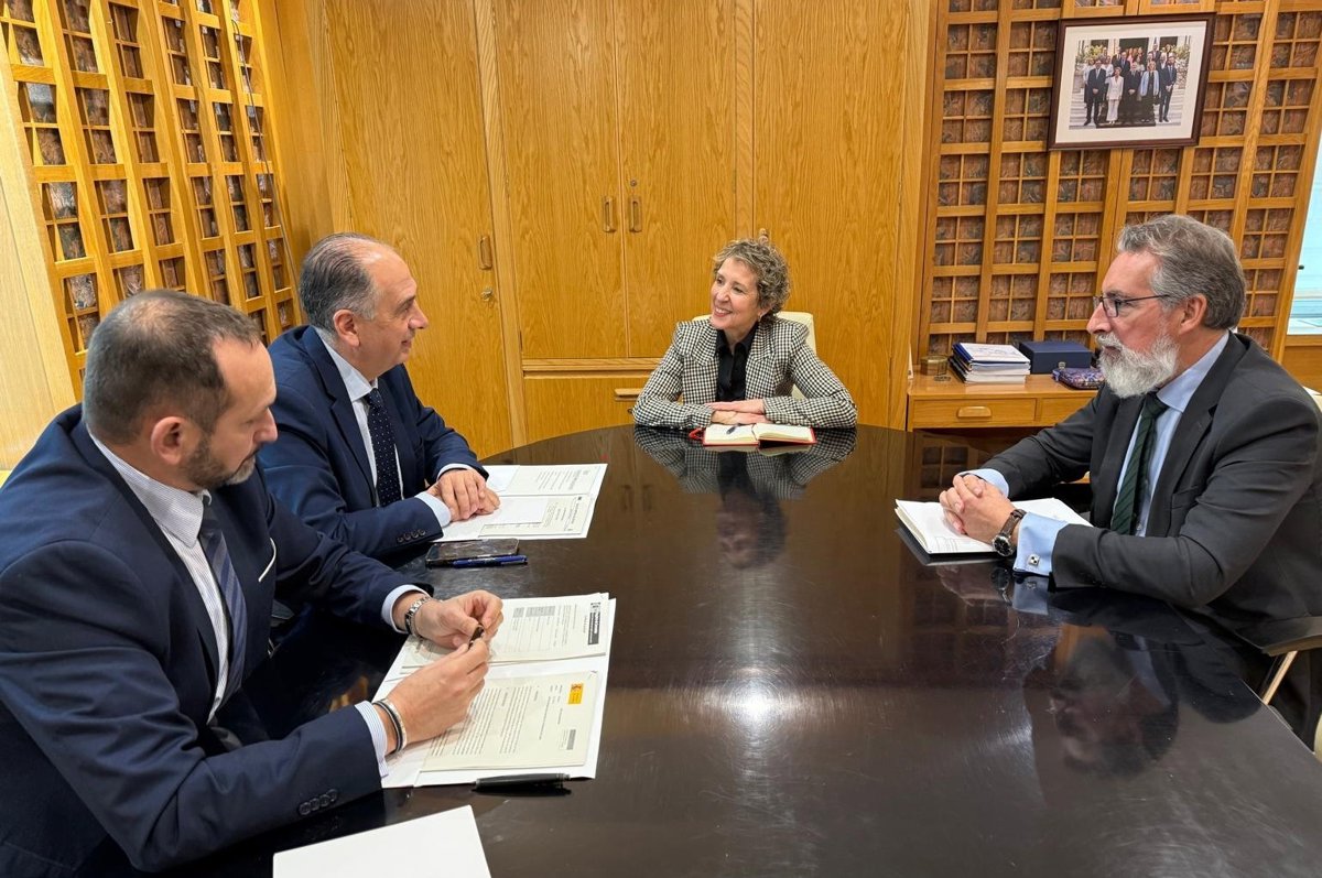 Valderrama en la reunión mantenida en Madrid con la secretaria de Estado de Seguridad, Aina Calvo, y el director general de Coordinación y Estudios del Ministerio, Eugenio Pereiro. - GVA