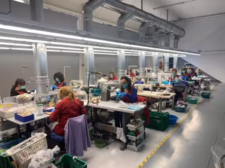 Una empresa de calzado de Elda (Alicante) fabrica cerca de 20.000 mascarillas semanales y ha implementado un sistema para garantizar la seguridad tanto del material como de sus trabajadores: las aparadoras fabrican desde casa las mascarillas que, después, se esterilizan con ozono. Han proporcionado ya este equipamiento a hospitales, centros de salud de la provincia y fuerzas de seguridad.