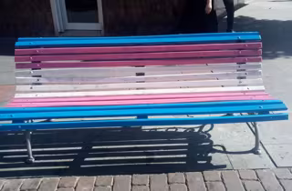 Archivo - Un banco con los colores de la bandera trans - ASOCIACIÓN GAYTAFE - Archivo