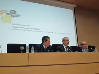 El encargado de presentar la conferencia inaugural ha sido el rector de la Universitat de València, Esteban Morcillo y el responsable de la fundación Cultura de Paz de la UNESCO, Federico Mayor Zaragoza, ha reivindicado durante su ponencia la excelencia educativa como elemento clave de futuro para los valencianos. También ha apoyado la apuesta de pluralismo de Escola Valenciana, basada en el modelo de educación vehicular en valenciano.