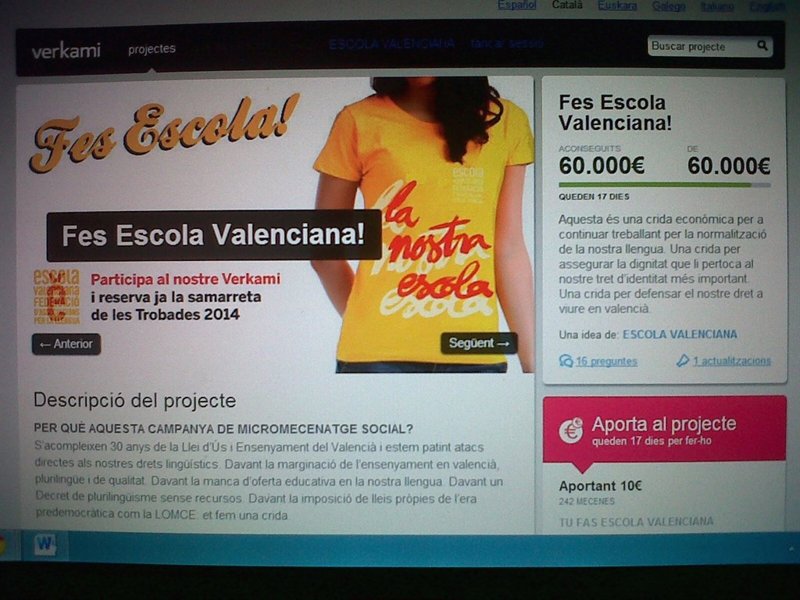 El proyecto de micromecenazgo estará activo hasta el 30 de noviembre, por lo que "quedan dos semanas por delante y se puede continuar participando en este llamamiento, que es el primer Verkami que lanza una entidad cívica para un proyecto global de actividades con un perfil como el de Escola Valenciana".