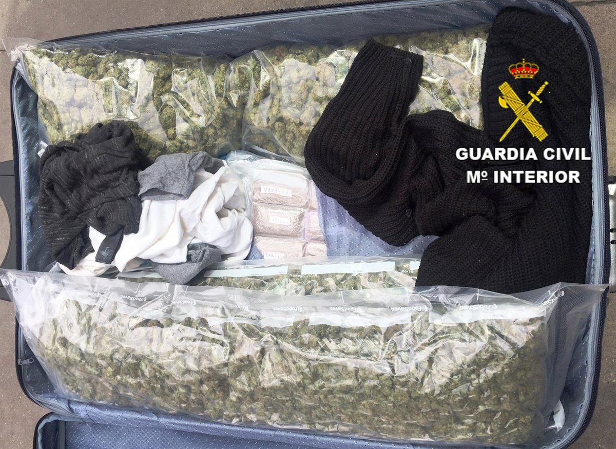 Tras identificar al ocupante, los efectivos hallaron en el doble fondo de una maleta varias bolsas de plástico al vacío que contenían un total de 3,2 kilos de marihuana y 4,1 kilos de hachís, así como 21 gramos de speed.