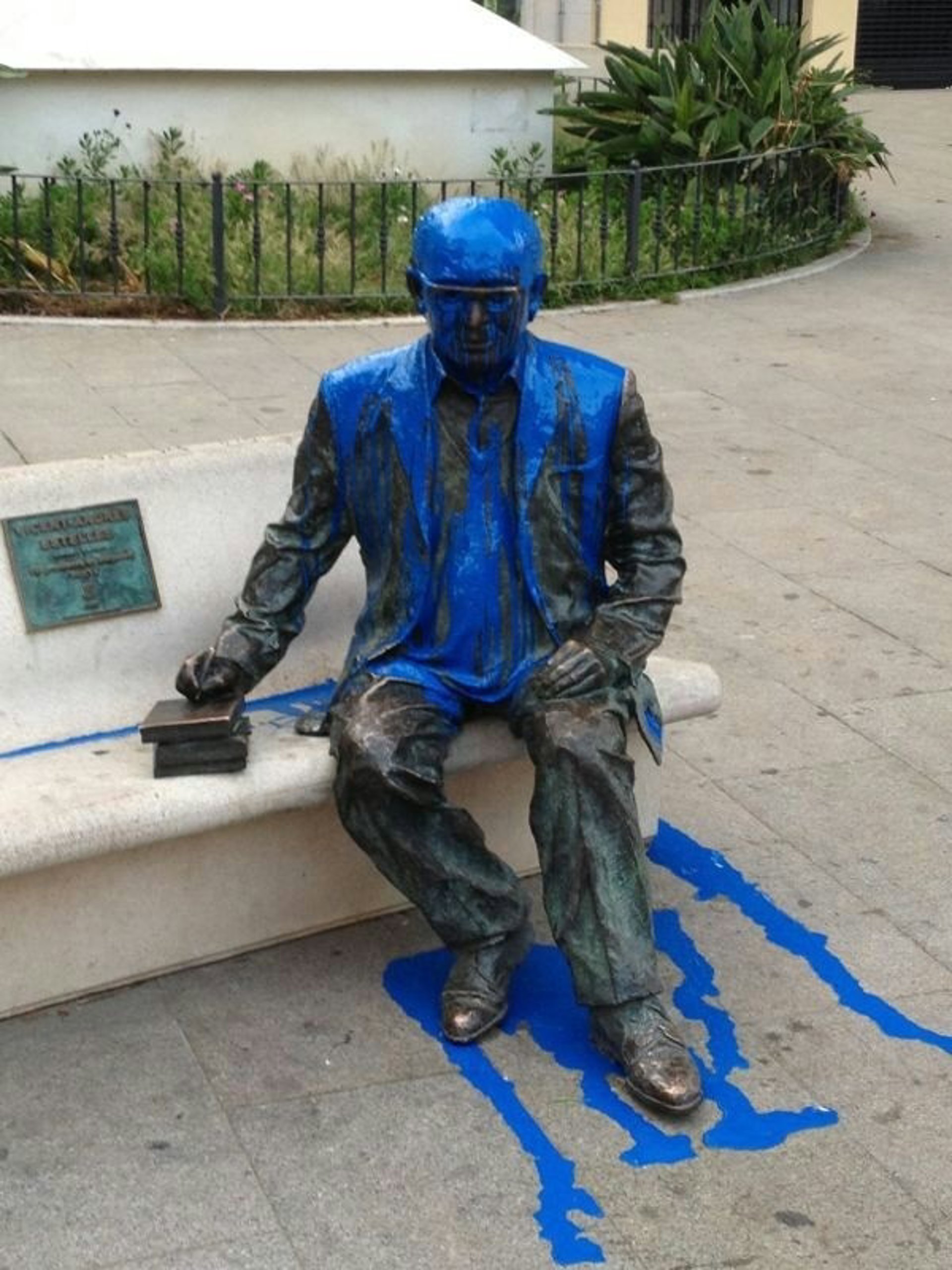 Según han explicado a Europa Press estas fuentes, la escultura ha aparecido esta mañana manchada porque, al parecer, la han rociado con un bote de pintura azul.