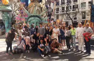 Los alumnos del primer curso de Architecture de la Universidad CEU Cardenal Herrera, de 20 nacionalidades distintas, han visitado la falla Almirante Cadarso-Conde Altea para conocer las claves de su montaje.