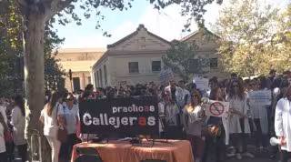 Unos dos centenares de estudiantes --según los convocantes--, de carreras como Medicina y Enfermería y procedentes de diversos puntos de la Comunitat, han protestado portando carteles con lemas como 'Prácticas callejeras', 'Médicos en formación, no discriminación', 'Igualdad para una sanidad de calidad' o 'Vuestros prejuicios, nuestros perjuicios'.