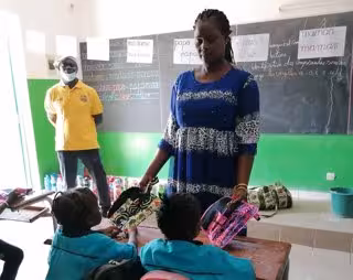 Pocas semanas después, una vez seleccionados los primeros diseños, mujeres en riesgo de exclusión social de Thies accedían a un sueldo digno cosiendo el modelo de plumier escolar realizado con resmas de tela vaquera y wax africana, que fue diseñado por el estudiante Federico Pallardó. La coordinadora de Formación Senegal en Thies, Anna de Ancos, se encargó del reparto de los plumieres, en los que se incluyó material escolar, en varias escuelas senegalesas.