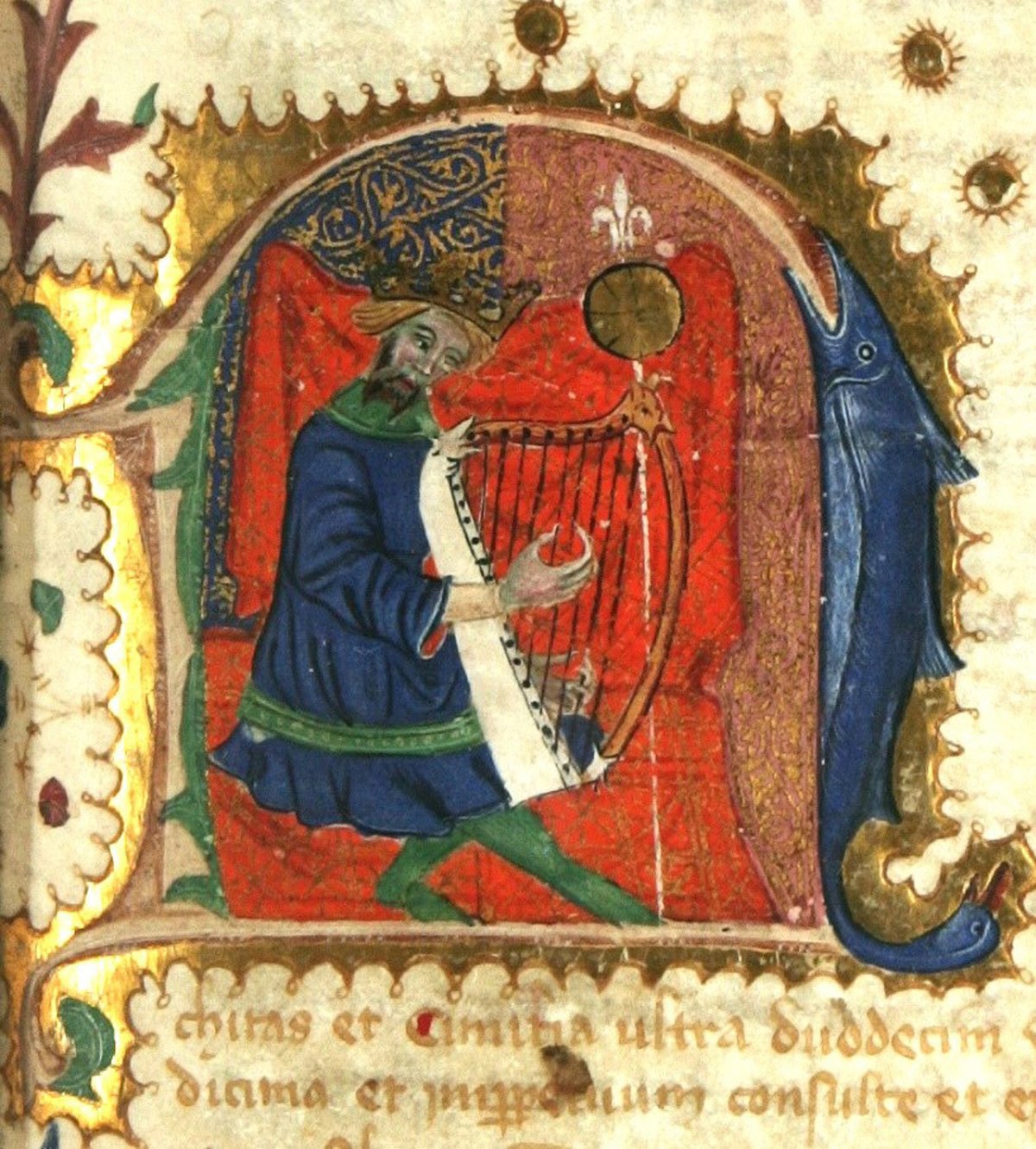 Jaume I como David músico en el libro de privilegios de Alzira. - REMITIDA UV