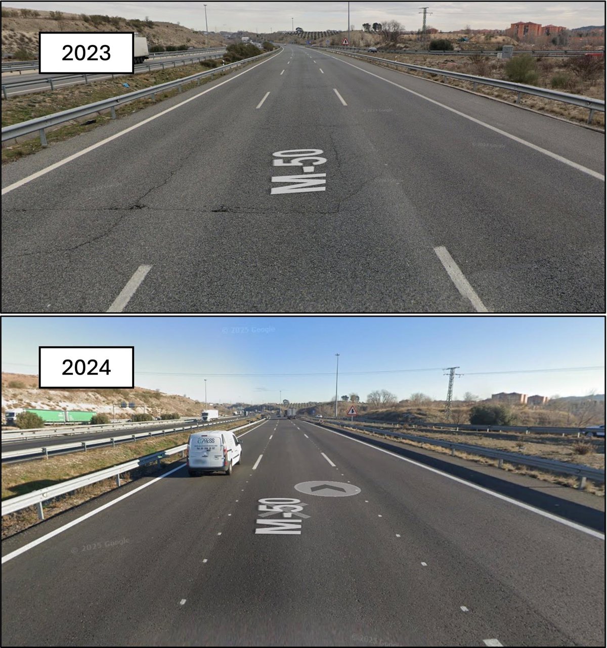 La toma de datos se realizó en siete tramos de la M-50 en noviembre 2023 (pre-rehabilitación) y noviembre 2024 (post-rehabilitación) para asegurar condiciones climáticas similares y, además, bajo condiciones de tráfico en flujo libre, con el fin de aislar el efecto exclusivamente del estado del pavimento en el consumo y emisiones de los vehículos.