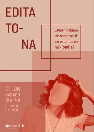La Asociación de Empresarias y Profesionales de Valencia ha convocado para este sábado 1 de junio una editatona para aumentar la representación de mujeres y atajar la brecha de género actual en la enciclopedia digital. La organización anima a todos los ciudadanos a sumarse a la jornada que se celebrará a partir de las 10 horas y hasta las 14:00 horas, ininterrumpidamente, en Convent Carmen.