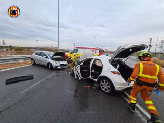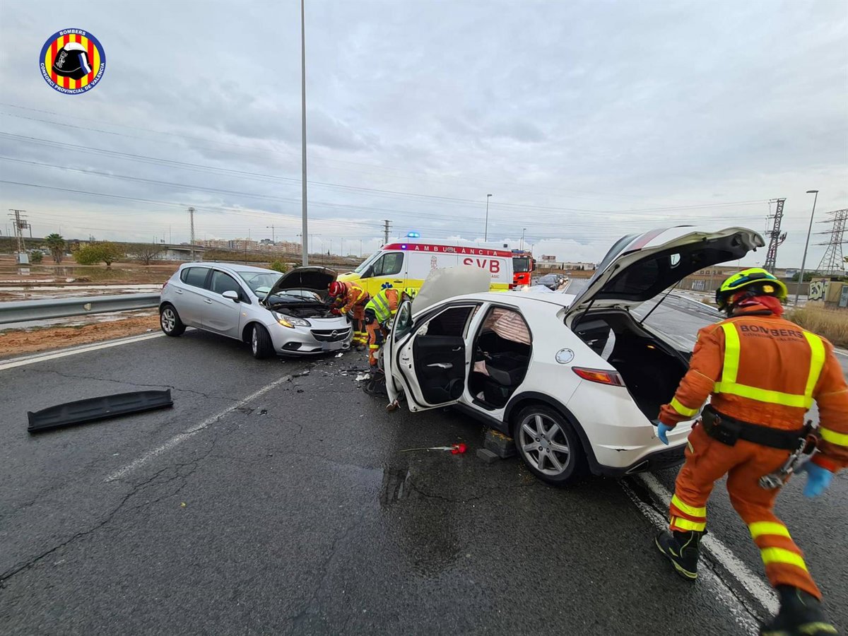 Efectivos del Consorcio Provincial de Bomberos de Valencia han excarcelado a una persona que ha quedado atrapada en el interior de un vehículo en un accidente de tráfico en la V-30 en Xirivella, en la incorporación a la A-3.