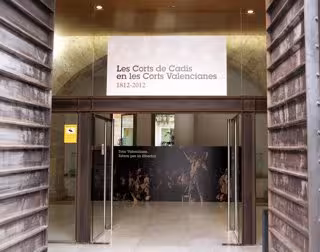 Ubicada en el vestíbulo del Parlamento valenciano, esta exposición estará abierta al público hasta el próximo 6 de diciembre --Día de la Constitución--, con el título 'Les Corts de Cadis a les Corts Valencianes 1812-2012'. Así, la Cámara recibe al visitante con un panel que expone el cuadro de 'El palleter declarant la guerra a Napoleó' de Sorolla y el lema 'Som valencians i estem per la llibertat'.